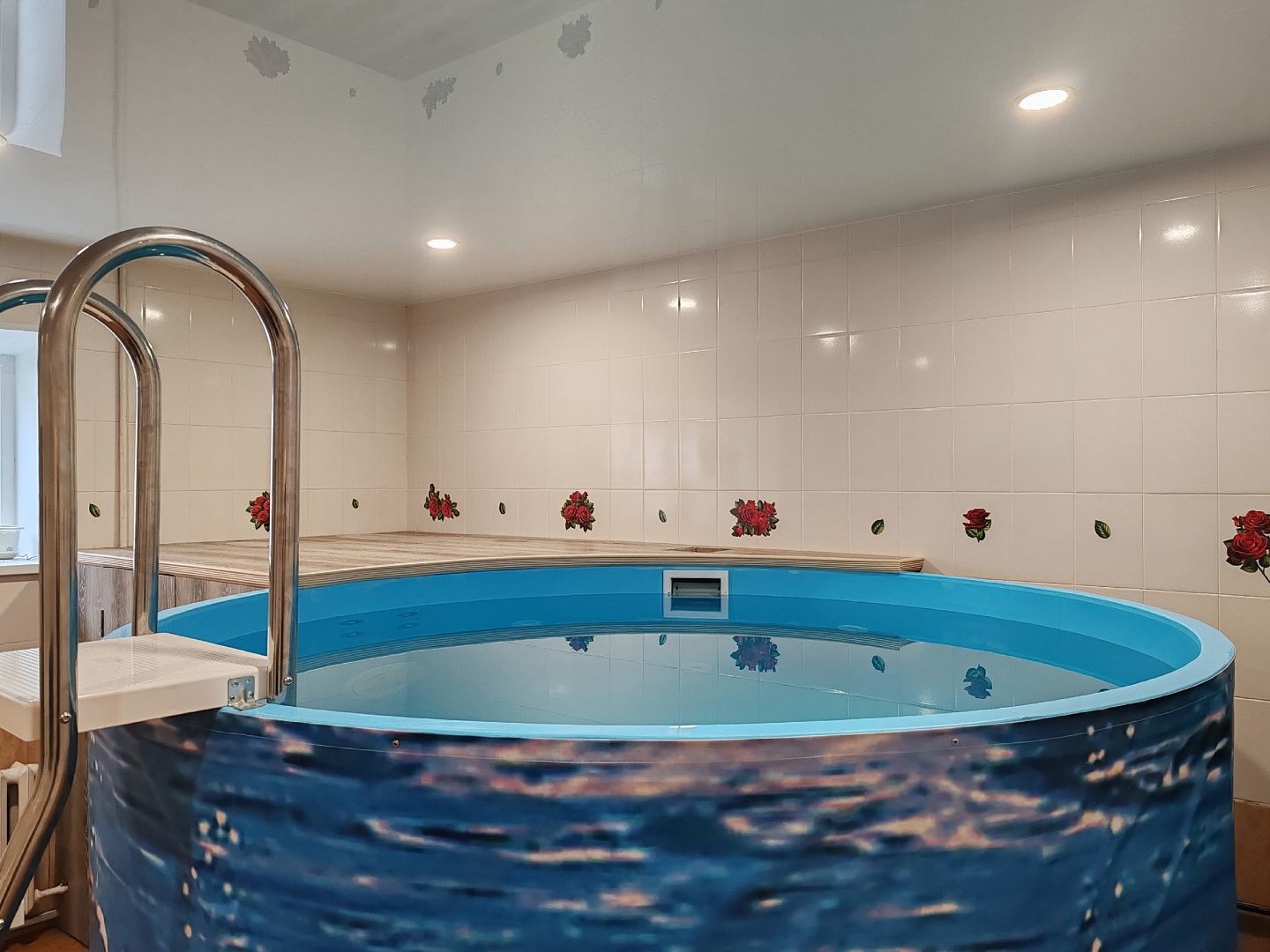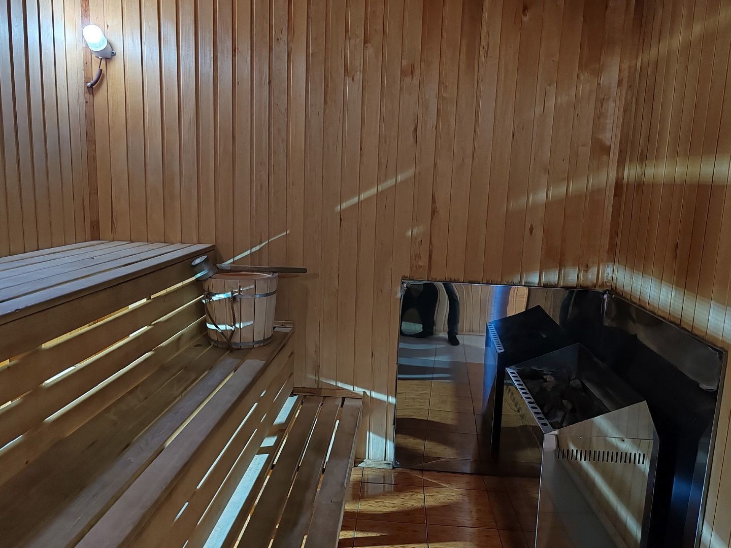 Внутри вас вас ждёт финская парная вместимостью до 8 человек, где можно устроить полезные банные процедуры, сделать скраб для тела и маски для кожи лица. После вы сможете принять прохладный душ или понежитесь в тёплом джакузи с гидромассажем.